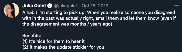 What to do then? Part of the solution is recognising this trigger in ourselves. We can try to stop seeing conversations as chess games. For example, it’s incredible how much more relaxed a discussion can be if you simply begin it by asking questions rather than making statements. It magically frames the whole exchange as a cooperative game where both players are working together to find the truth. Framing is everything.